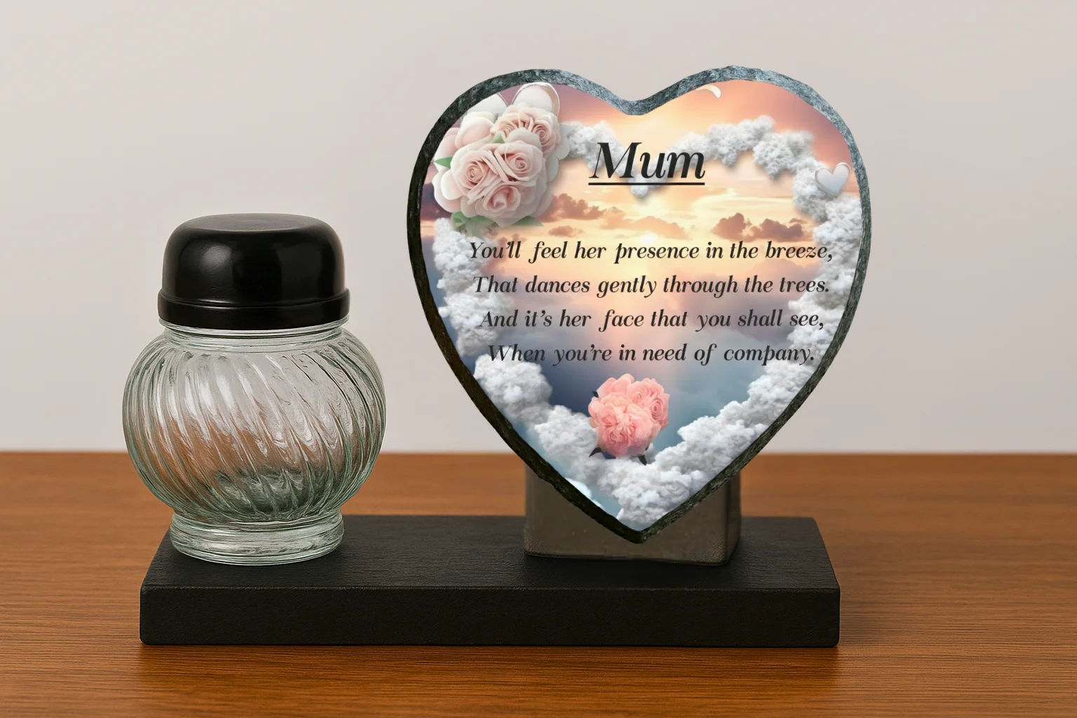 All our Plaques are mounted on a Recycled plastic base, making our product more environmentally friendly and ensuring stability when placed on a loved one’s resting place. Because slate naturally attracts heat and rays from the sun, fading will occur. To help delay this process, all our plaques are UV-coated, prolonging their life against these natural weather conditions.