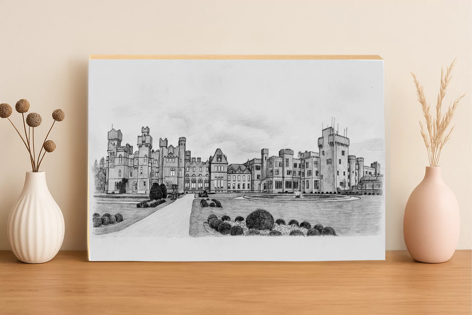 Be-spoke, Pencil Sketched, Hand Drawn Image of “Clonmacnoise Monastery Pencil Sketch” UV printed onto our QD Photo Block, further enhancing the grandeur of this image. A piece of natural beauty on any desk or wall creating an ideal gift or present for a friend or loved one.
